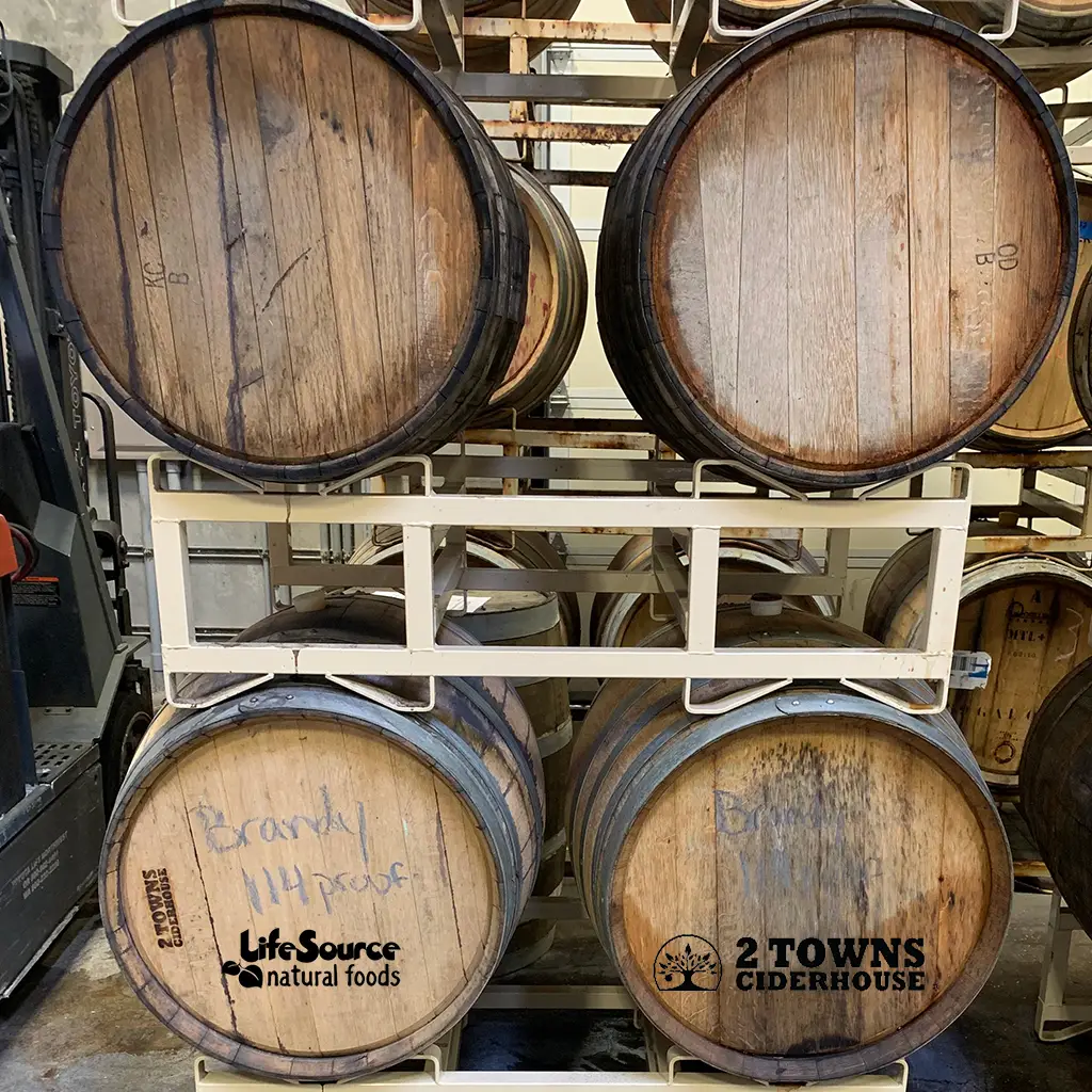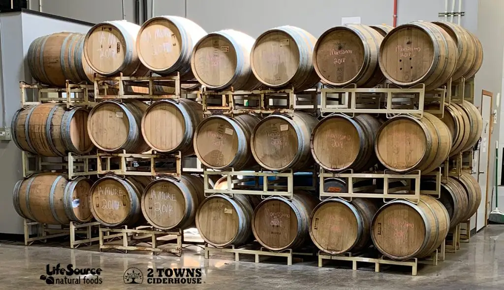 2Towns Hard Cider Ageing In Barrels