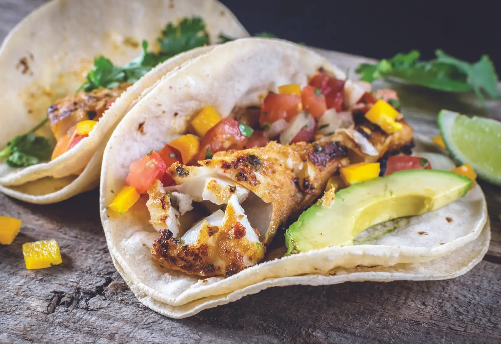 4. Serve with sliced avocado, pico de gallo, diced sweet bell pepper, and sour cream on warm tortillas.